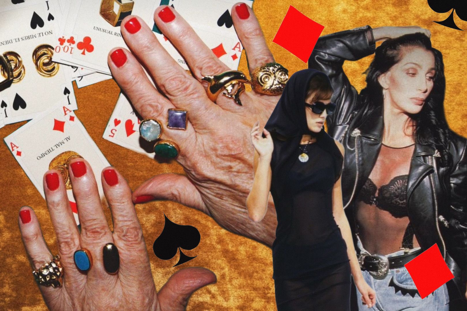 We personally think we need more gold chain talismans, leopard fur protection energy, & blue eyeshadow spells at the craps table kind of energy. We need long spiked nails adorned with fake jewels and hair that is done up as a warrior helmet.Â